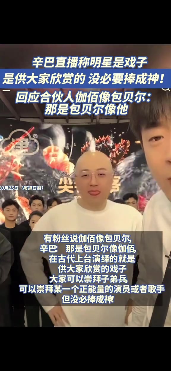 >辛巴直播称明星是戏子,供大家欣赏的,没必要捧成神