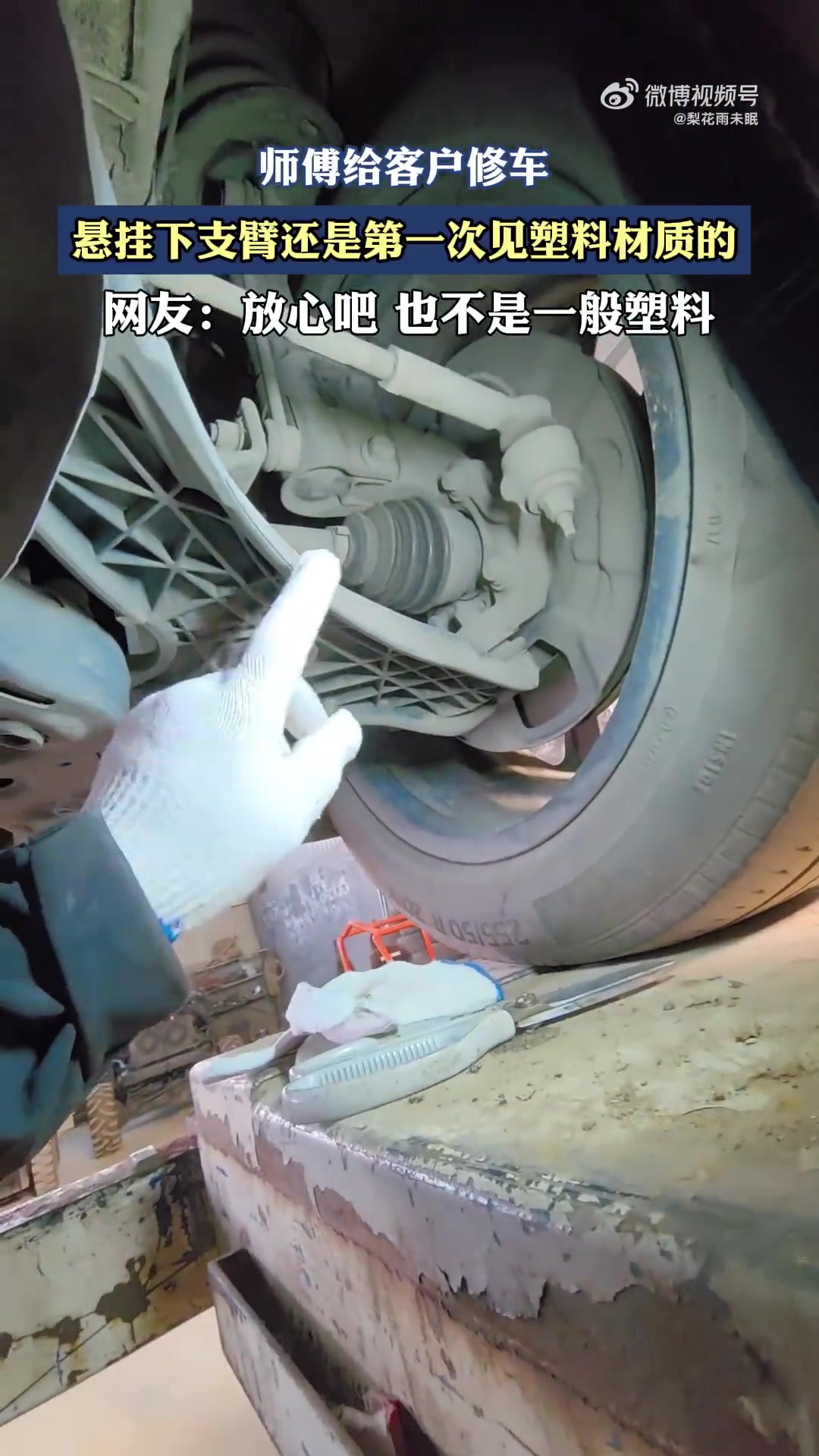 >师傅给客户修车,悬挂下支臂还是第一次见塑料材质的