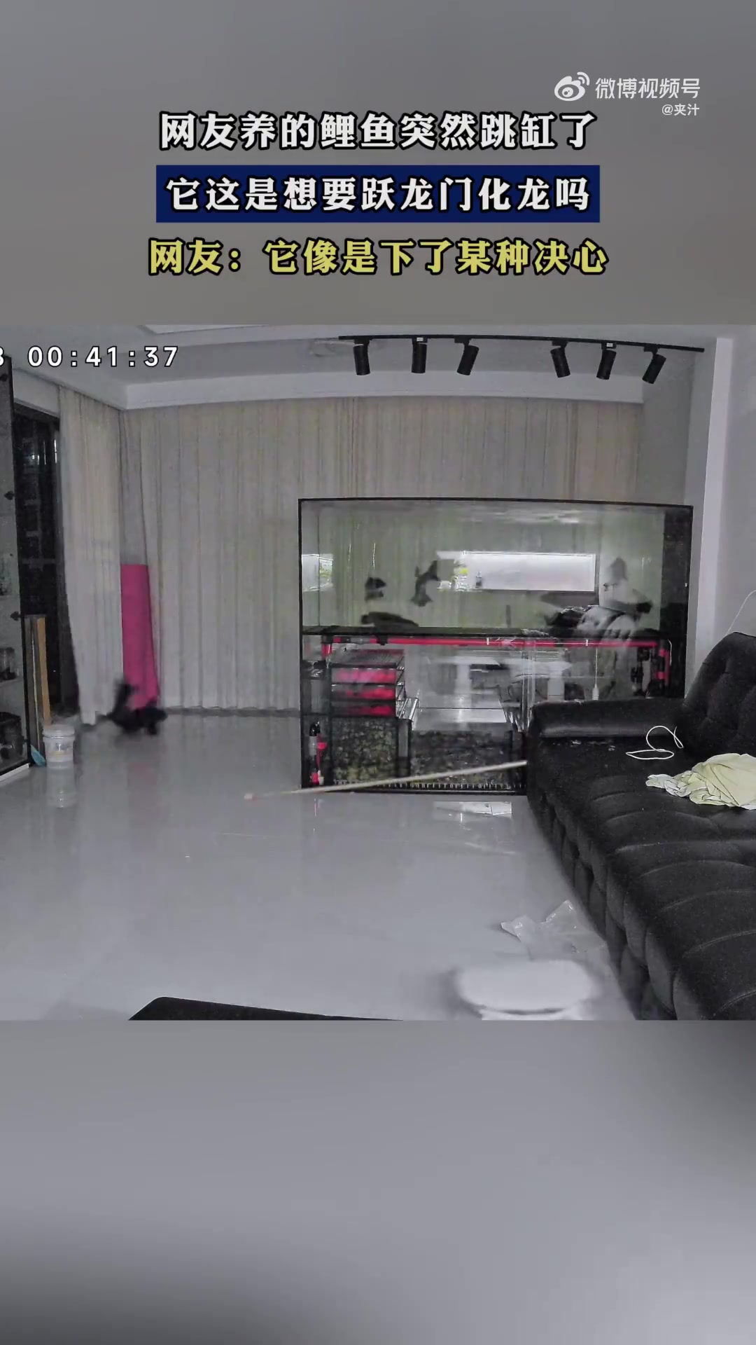 >鲤鱼突然跳缸,网友调侃想跃龙门