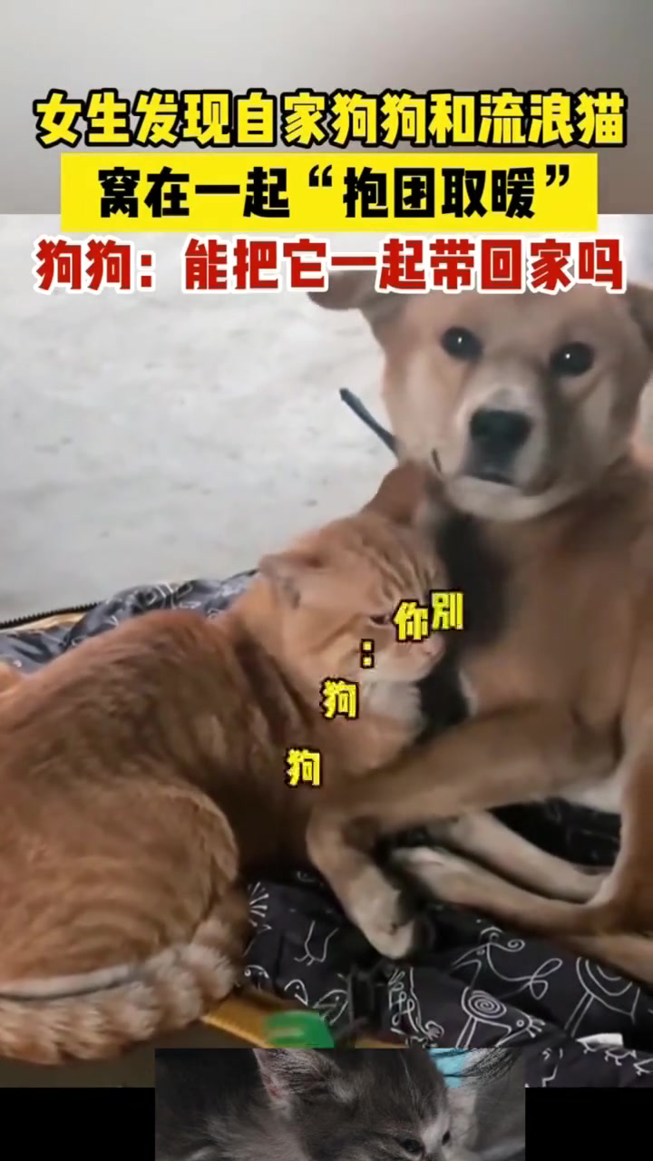 >女生发现自家狗狗和流浪猫窝在一起“抱团取暖”