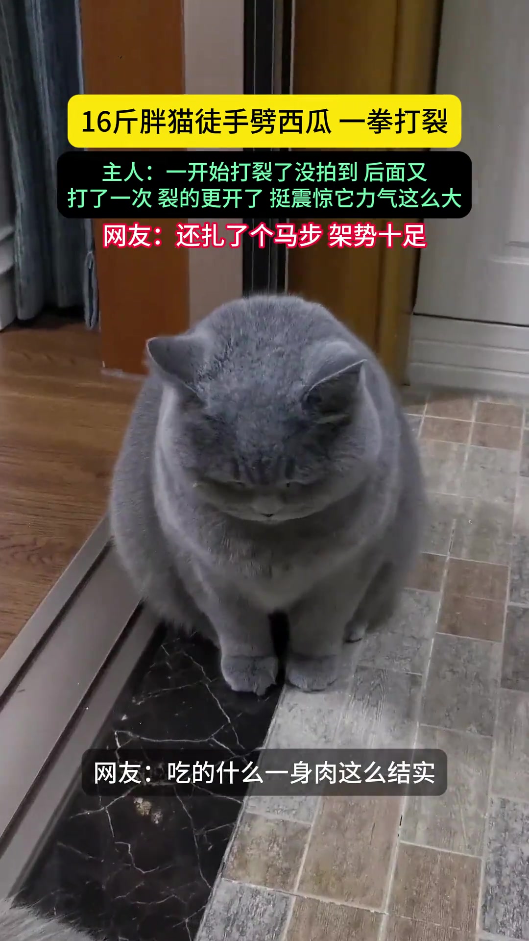 >胖猫徒手劈西瓜 一拳打裂!它甚至还扎了个马步 气势十足😂