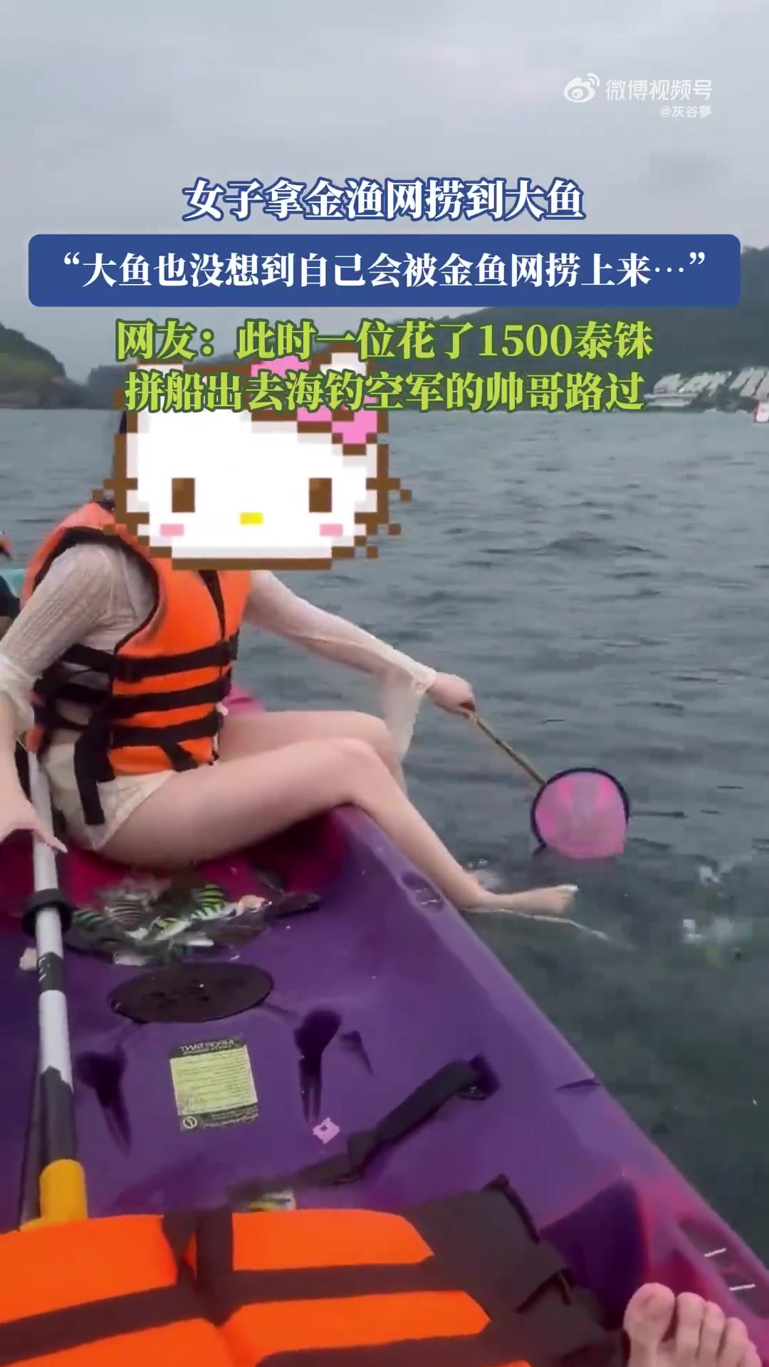>女子拿金鱼网捞到大鱼,大鱼也没想到自己会被金鱼网捞上来…