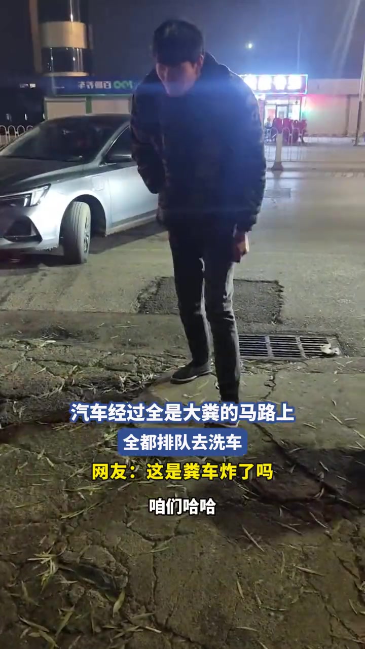 汽车经过全是大粪的马路上,全都排队去洗车!!