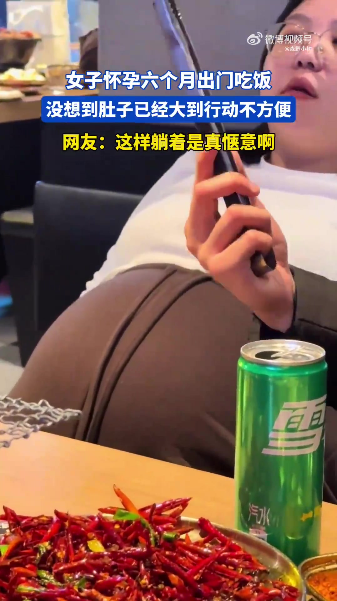 女子怀孕六个月出门吃饭,没想到肚子已经大到行动不方便