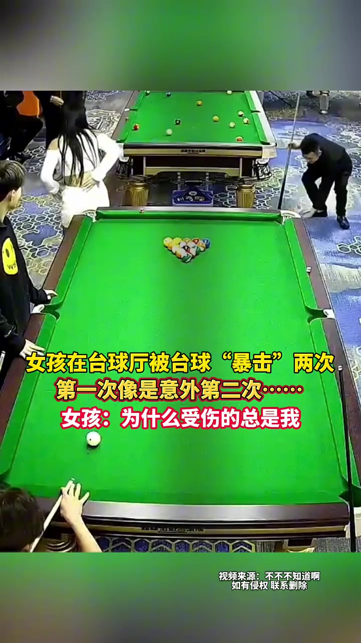 女孩在台球厅被台球“暴击”两次,女孩:为什么受伤的总是我!