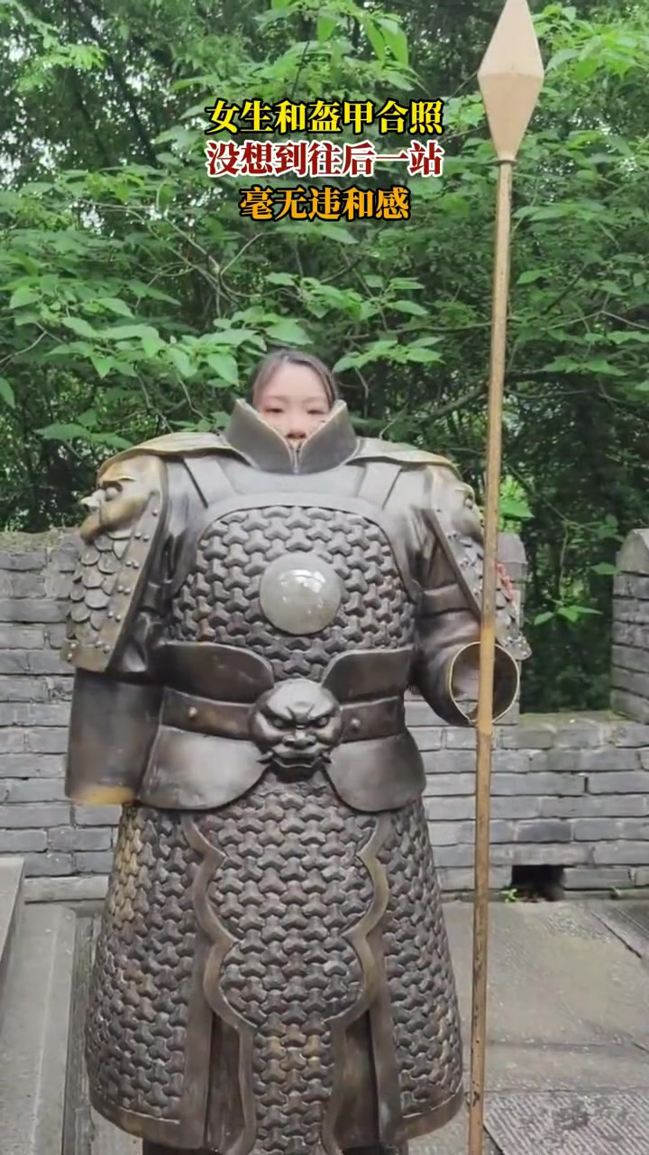 女生和盔甲合照,没想到往后一站,毫无违和感!!
