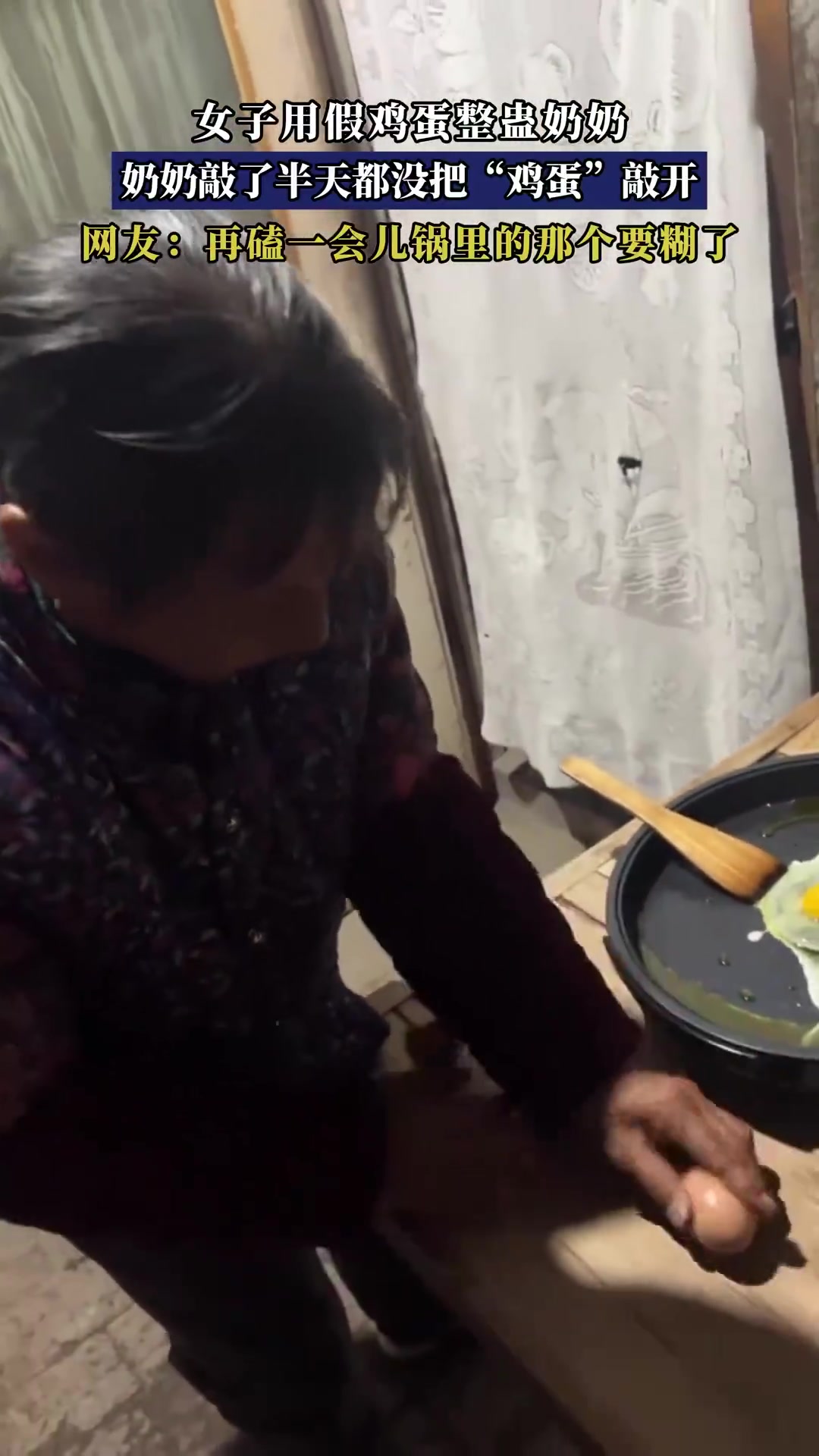 >女子用假鸡蛋整蛊奶奶,奶奶敲了半天都没把“鸡蛋”敲开