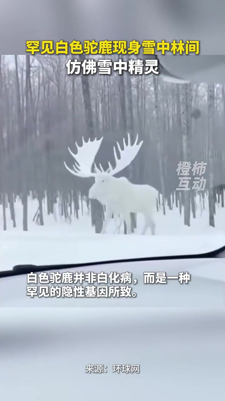 >罕见的白色驼鹿现身雪中林间,仿佛雪中精灵!
