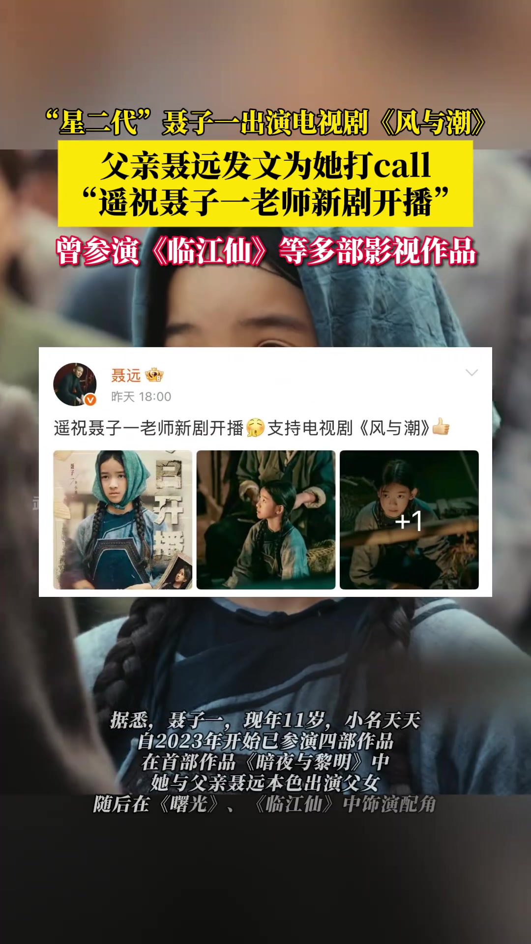 >演员聂远发文,为自己女儿聂子一的新戏《风与潮》宣传