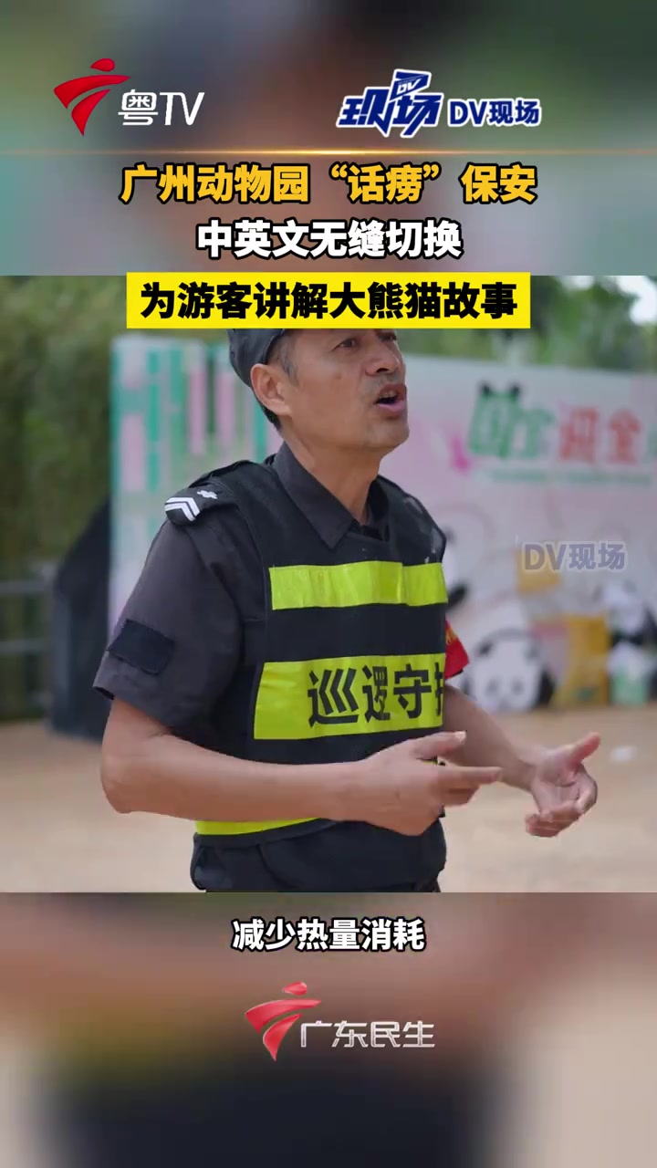 >广州动物园“话痨”保安中英文无缝切换,为游客讲解大熊猫故事。