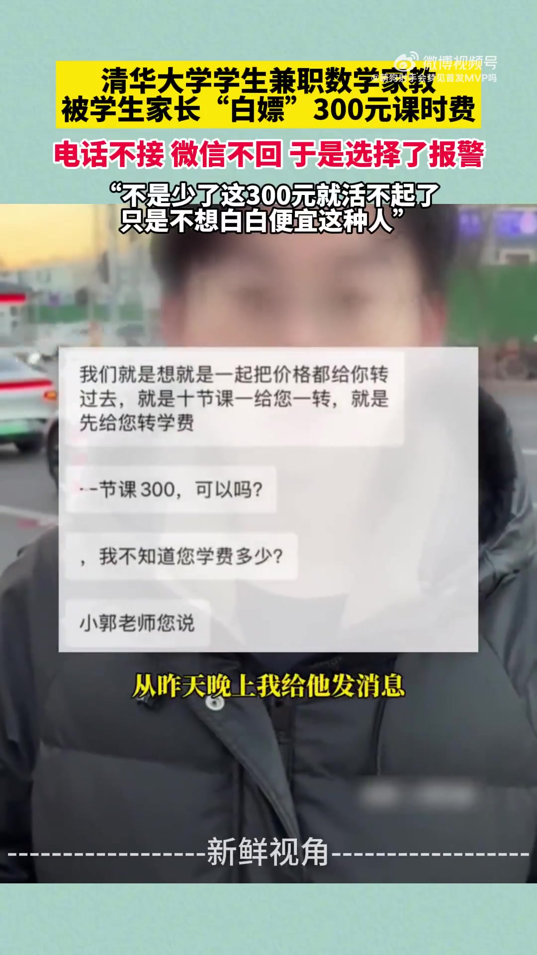 清华学生兼职家教,被家长 “白嫖” 300 元课时费