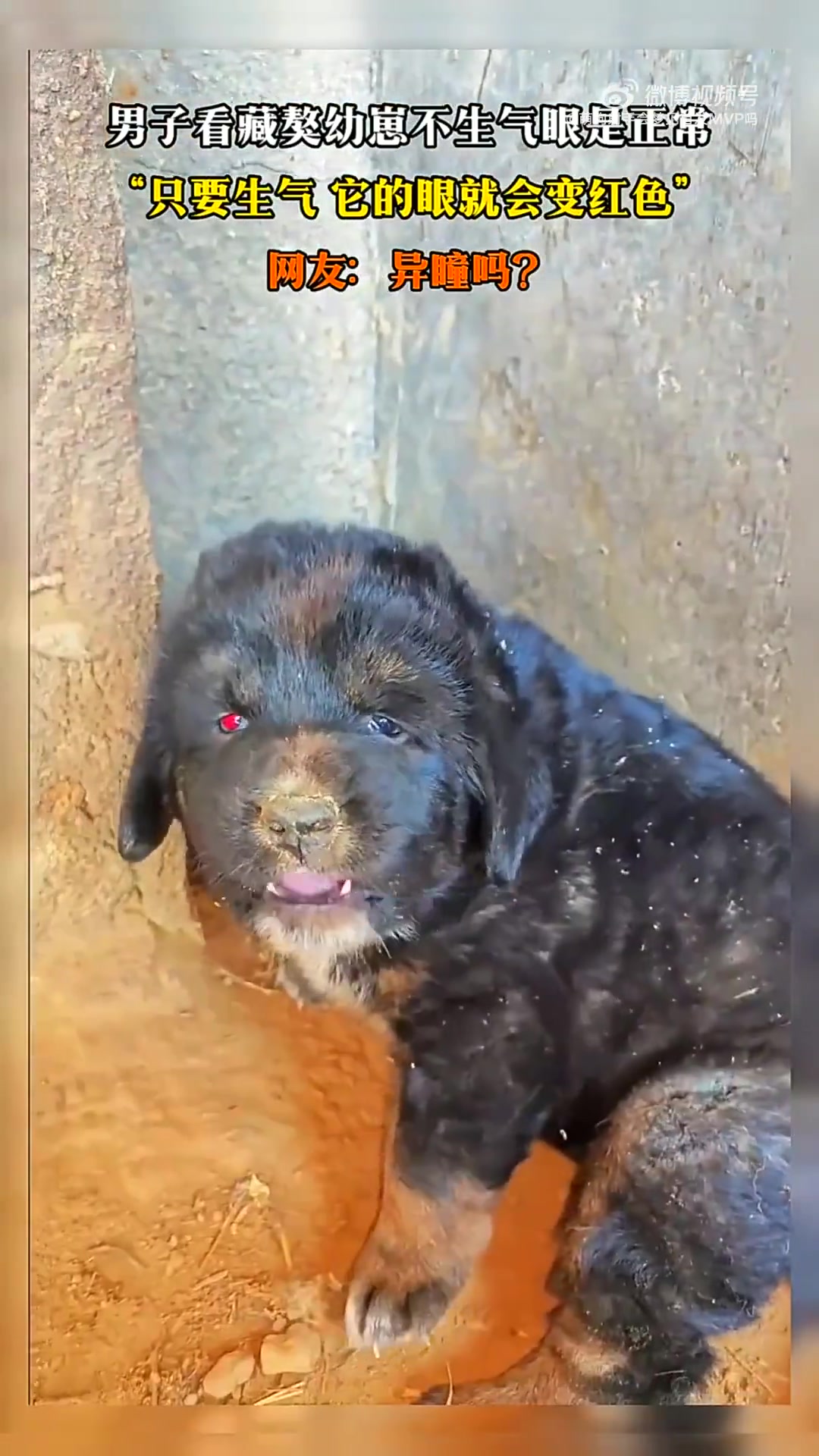 >男子介绍藏獒幼崽:“生气时眼睛会变红,不生气则正常”