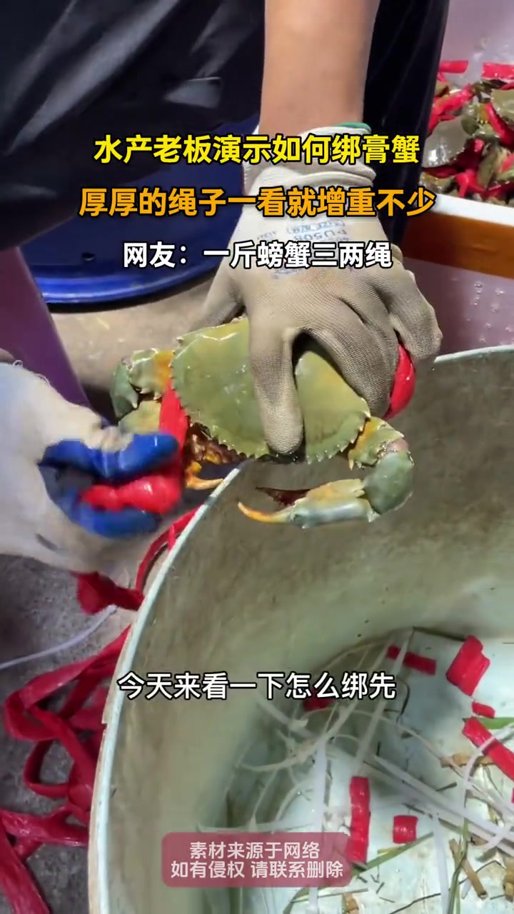 >水产老板演示如何绑膏蟹,厚厚的绳子一看就增重不少!!