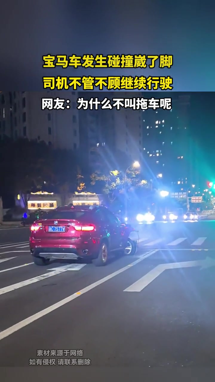 >宝马车发生碰撞崴了脚,司机不管不顾继续行驶!!