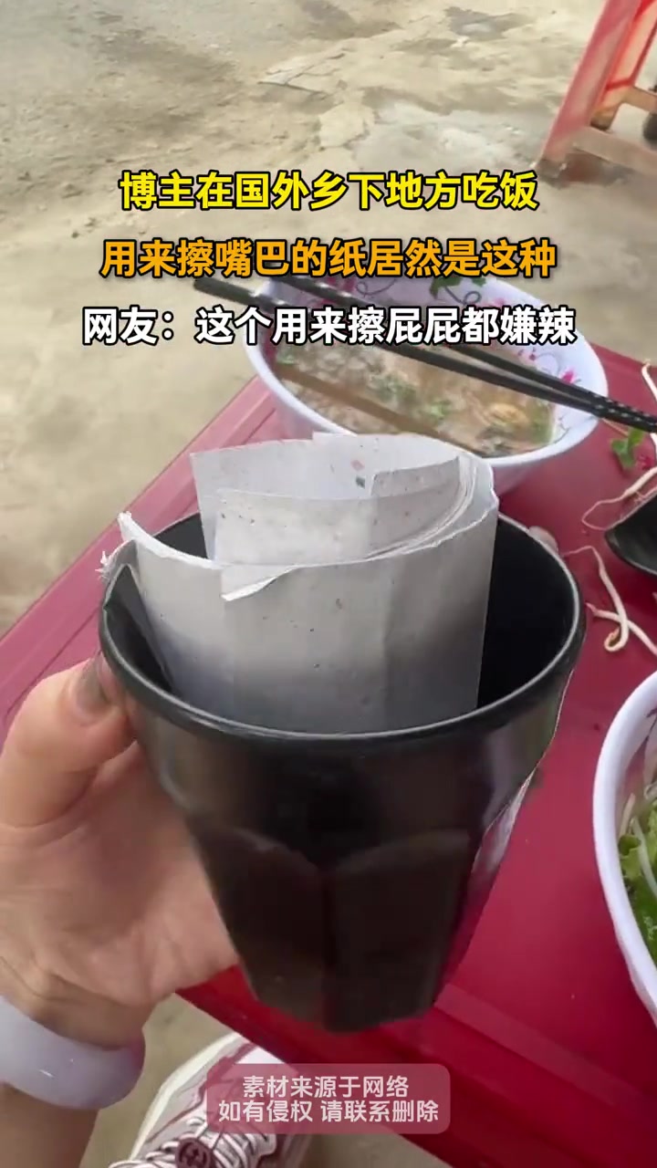 >博主在国外乡下地方吃饭,用来擦嘴巴的纸居然是这种!!!