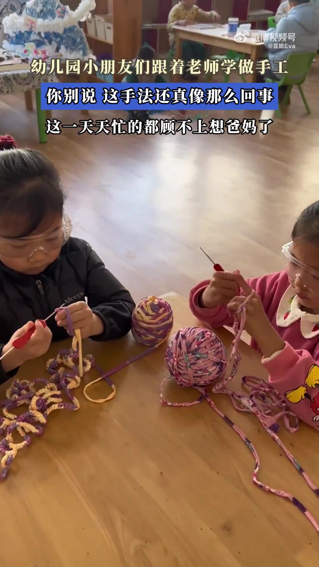 幼儿园小朋友跟老师学手工,手法有模有样超投入