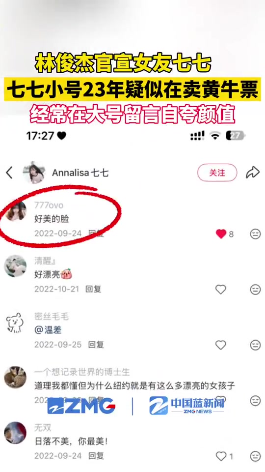 林俊杰女友七七小号疑似在卖黄牛票,经常在大号留言自夸颜值!