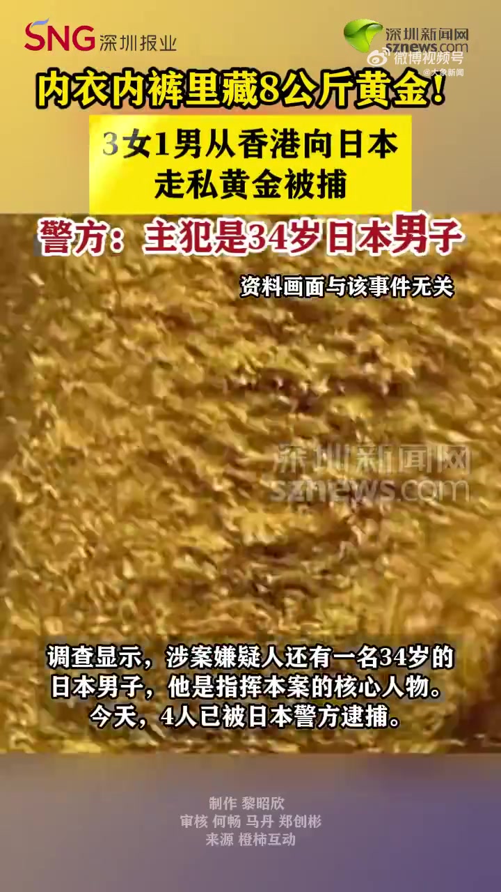>3 女 1 男内衣内裤藏 8 公斤黄金,从港走私日本被捕