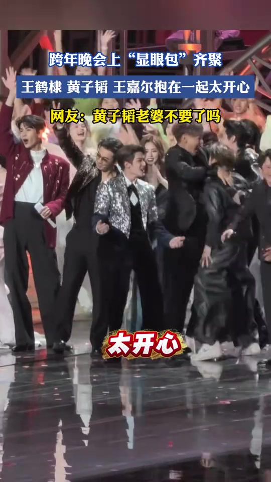 >跨年晚会上“显眼包”齐聚,王鹤棣黄子韬王嘉尔抱在一起太开心