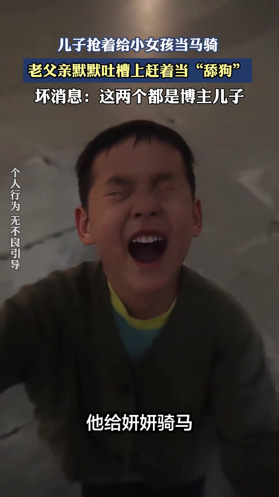 儿子抢着给小女孩当马骑,爸爸吐槽像 “舔狗”