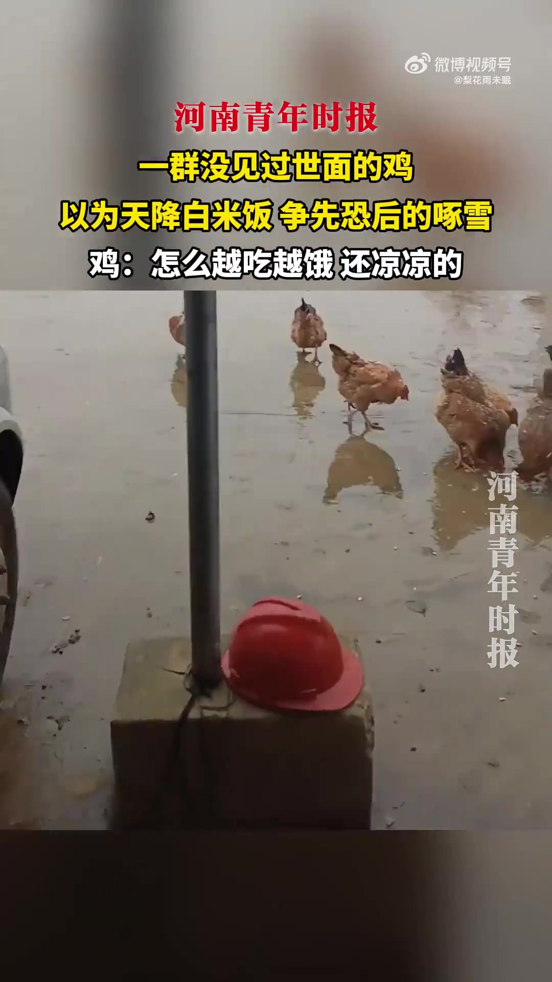 >一群没见过世面的鸡,以为天降白米饭,争先恐后的啄雪