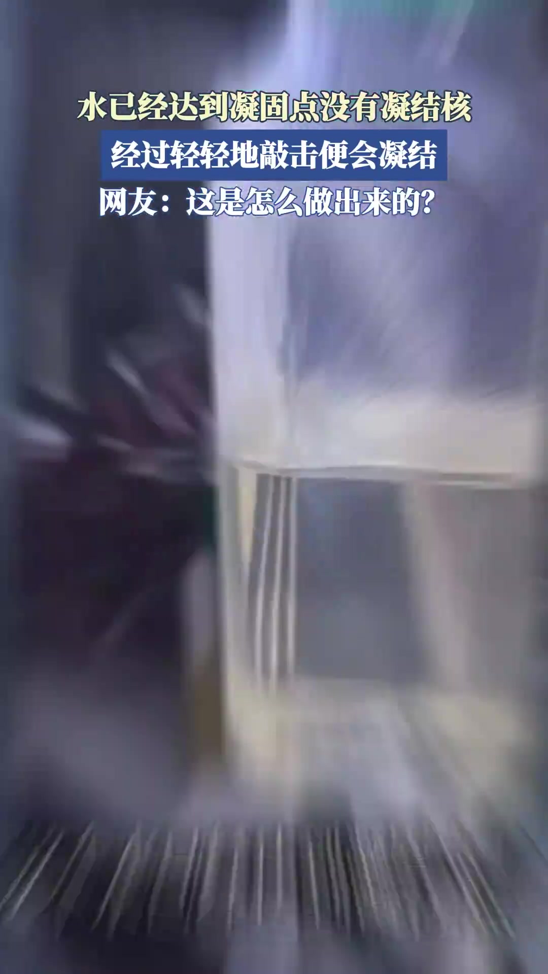 >水已经达到凝固点没有凝结核,经过轻轻地敲击便会凝结