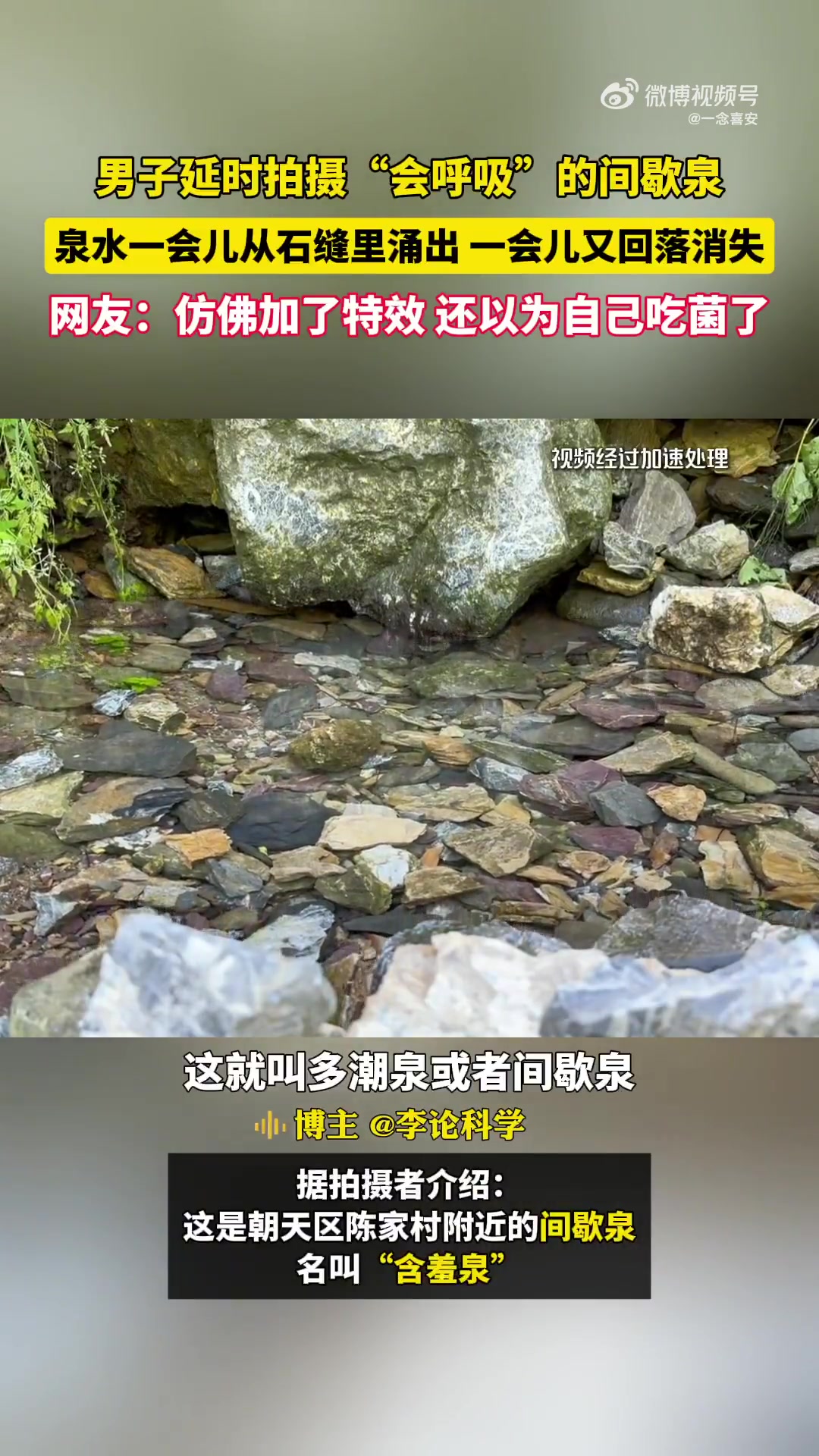 >男子拍到“会呼吸的泉“仿佛加了特效。