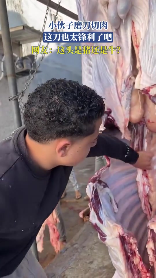 >小伙子磨刀切肉,这刀也太锋利了吧,网友:这头是猪还是牛?