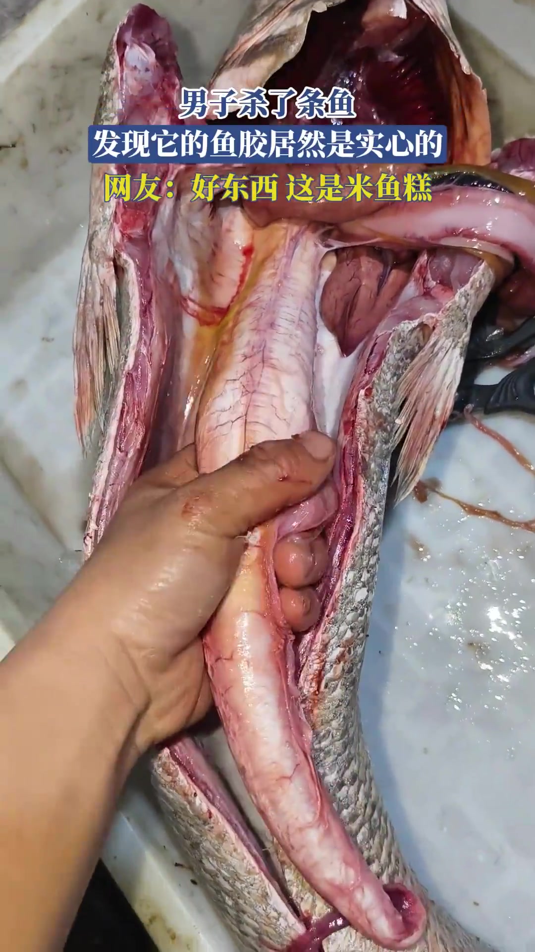 >男子杀了条鱼,发现它的鱼胶居然是实心的,网友:这是米鱼糕