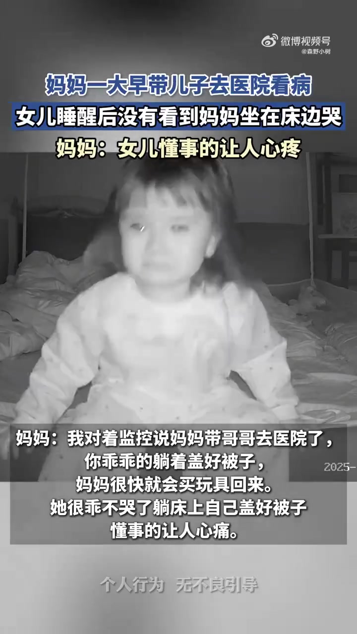 妈妈带儿子看病,女儿睡醒没见妈妈坐床边哭