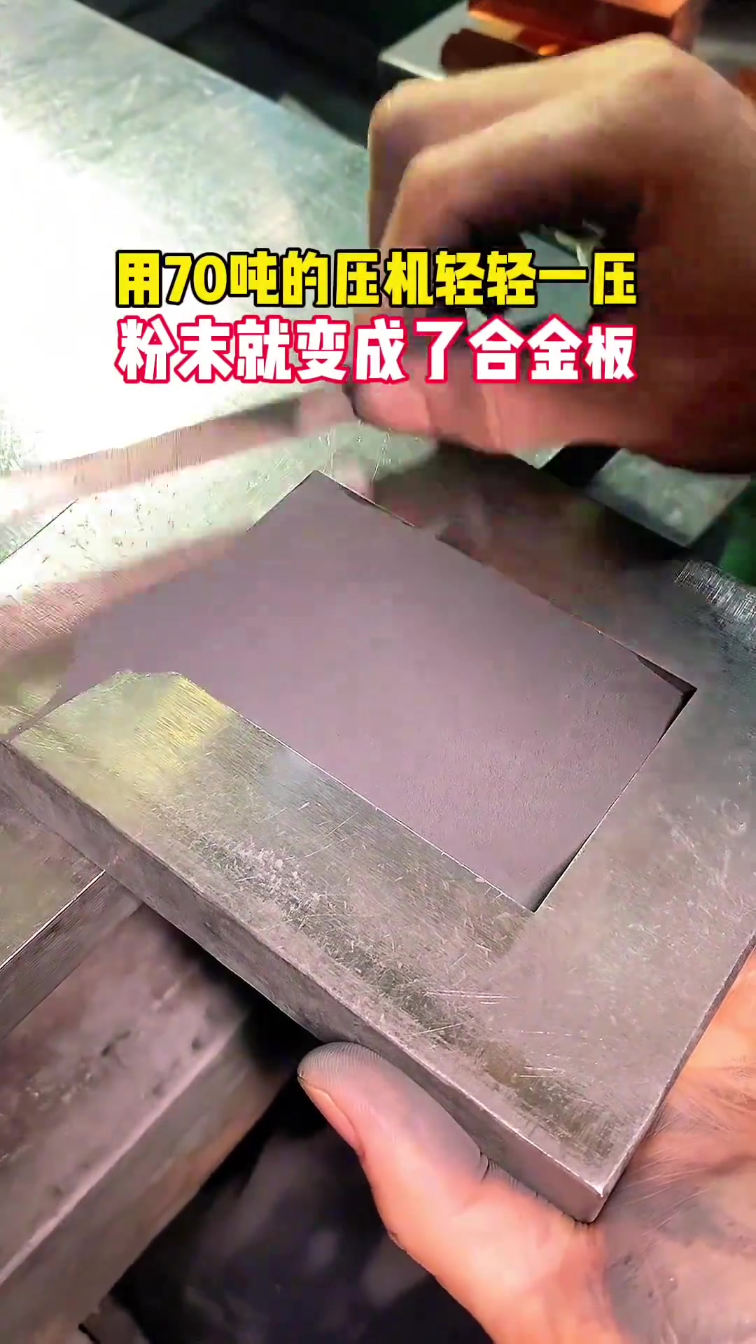 用70吨的压机轻轻一压,粉末就变成了硬质合金板材
