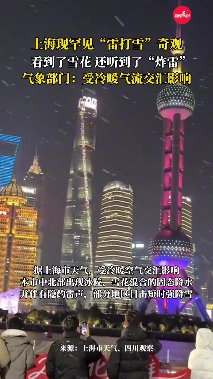 >上海现罕见“雷打雪”奇观,闪电与雪花共舞