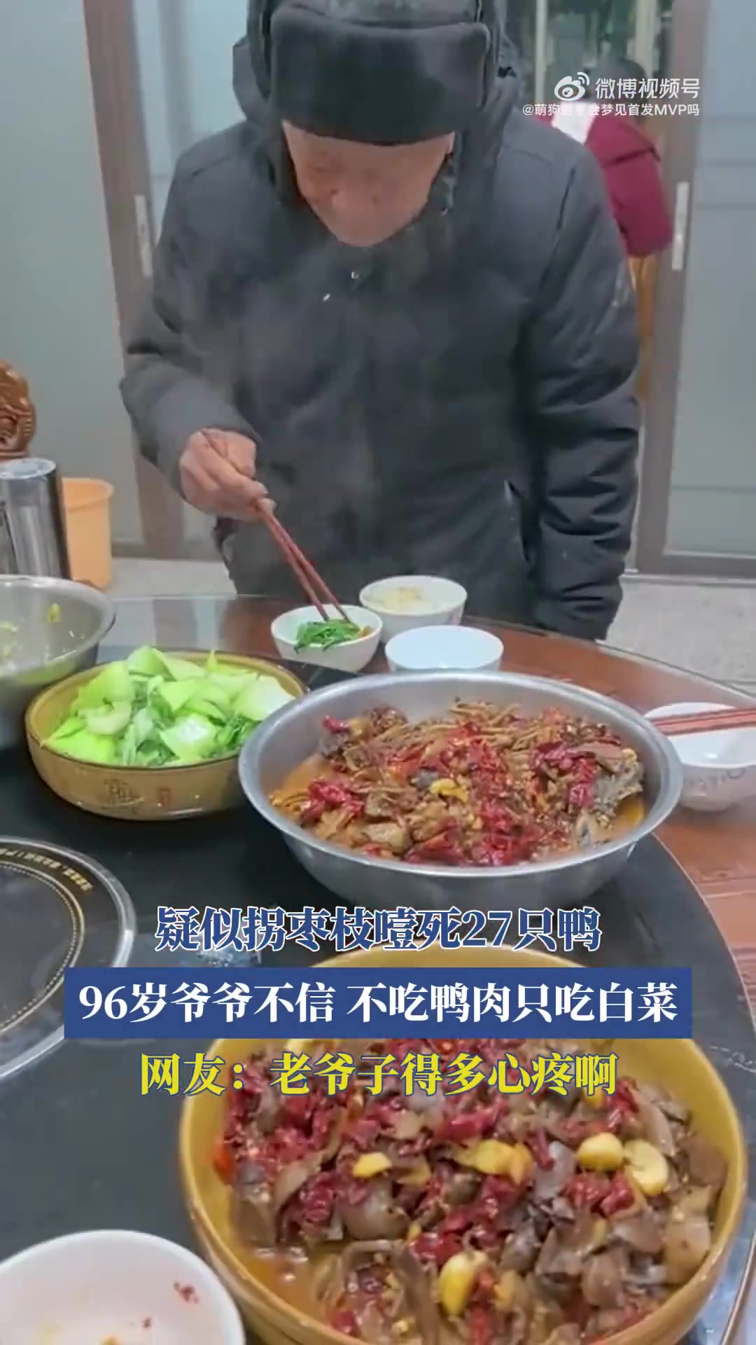 >拐枣枝疑似噎死 27 只鸭,96 岁爷爷不信只吃白菜