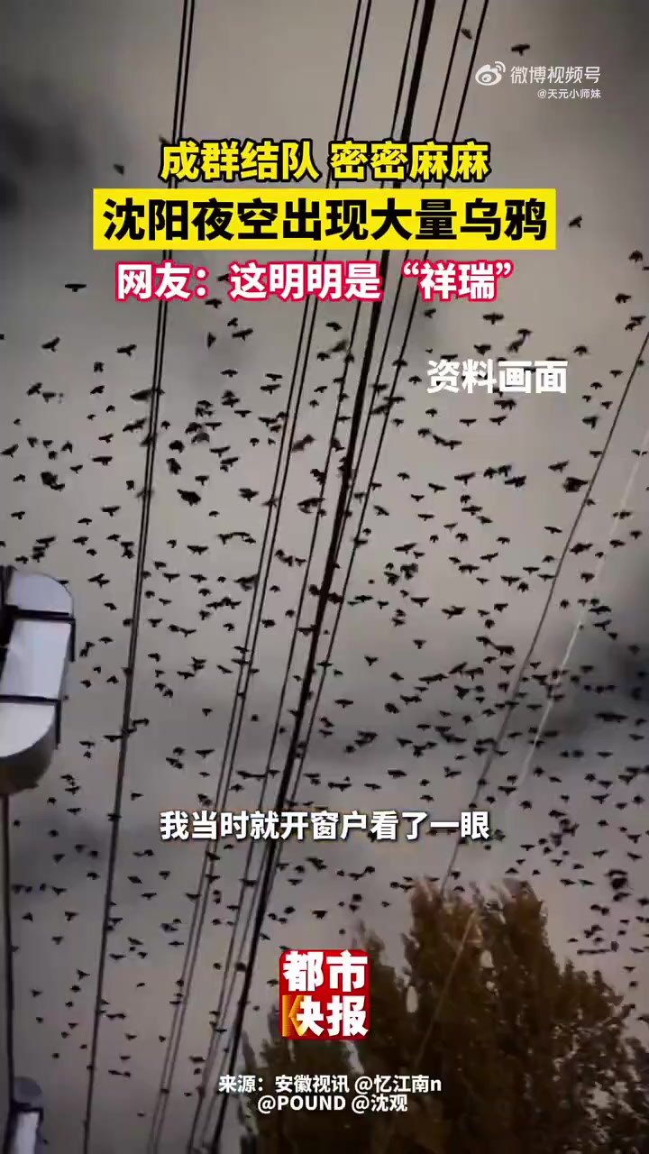 沈阳夜空现大量乌鸦网友:老沈阳祥瑞象征