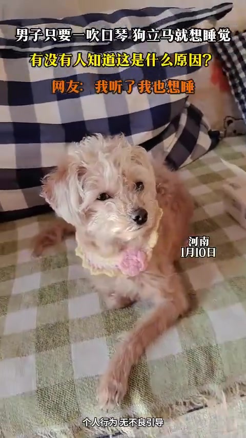 >男子只要一吹口琴,狗立马就想睡觉