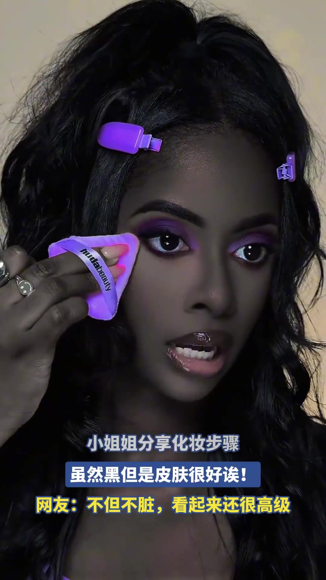 >小姐姐分享化妆步骤,虽然黑但是皮肤很好诶!