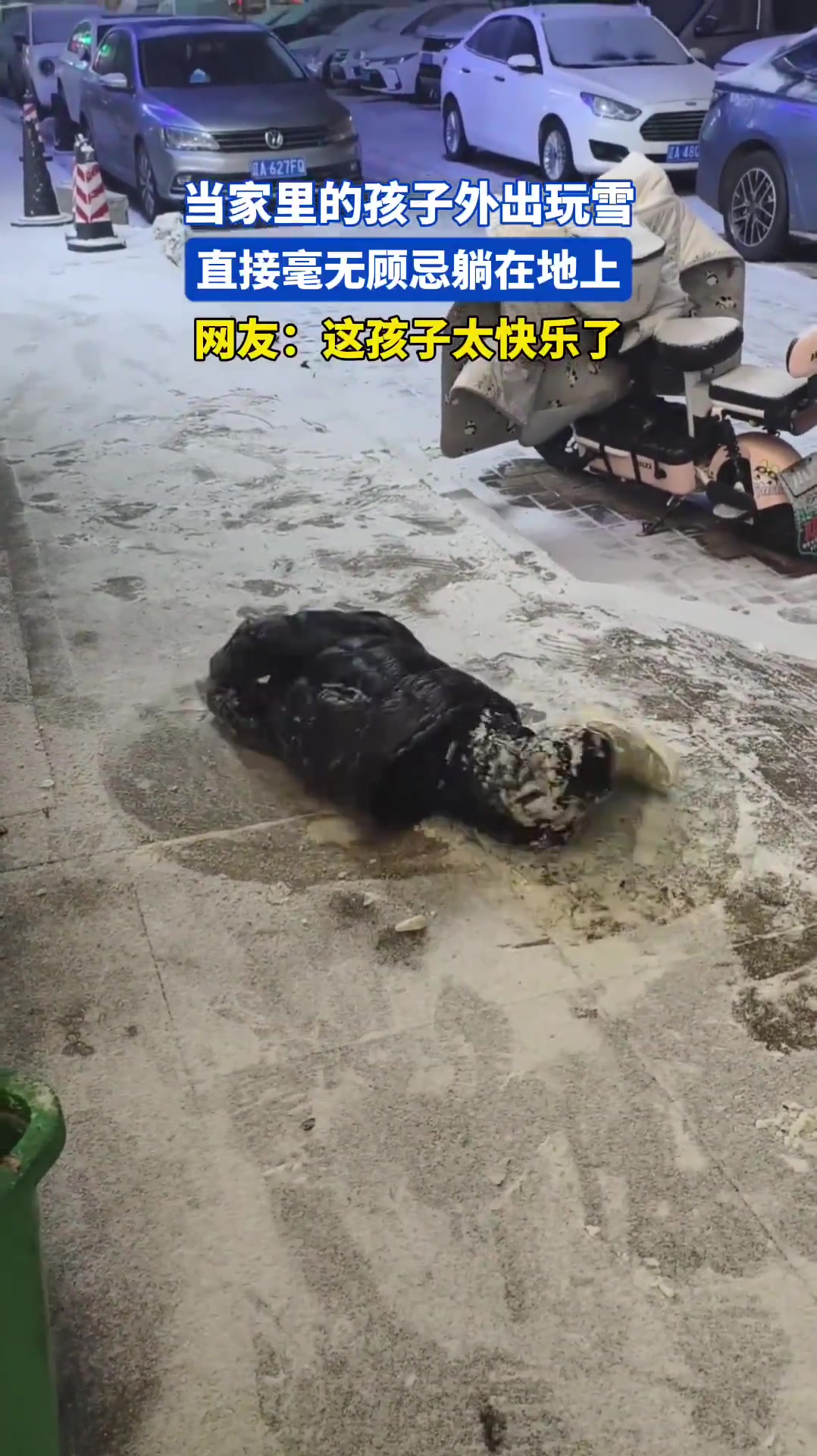 当家里的孩子外出玩雪,直接毫无顾忌躺在地上