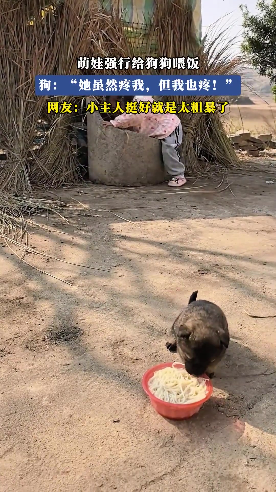 >萌娃强行给狗狗喂饭狗:我也疼