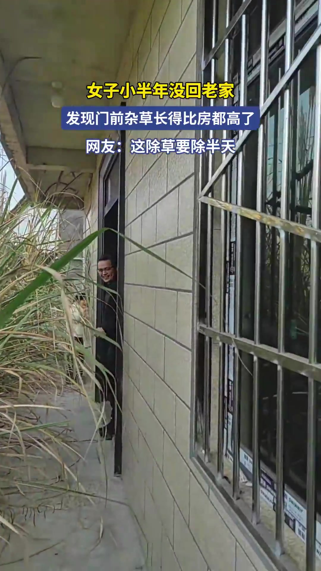 >女子小半年没回老家门前杂草比房高
