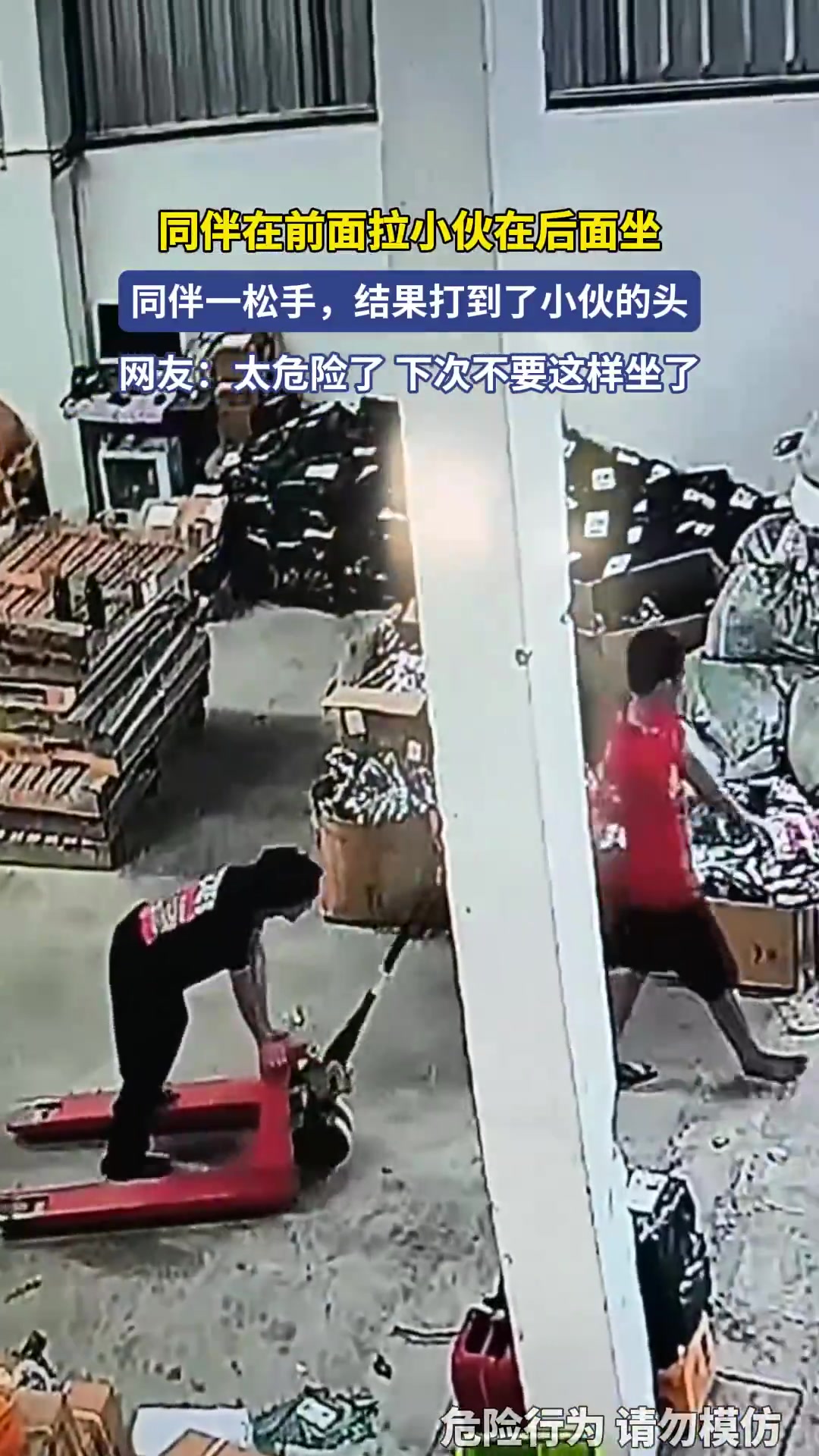 同伴拉小伙坐后面松手打到小伙头