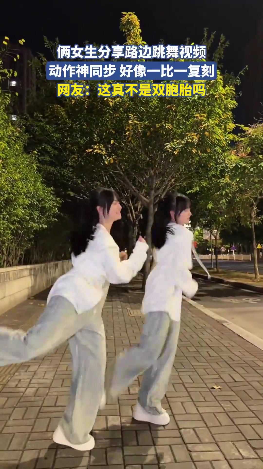 >俩女生路边跳舞动作神同步一比一复刻