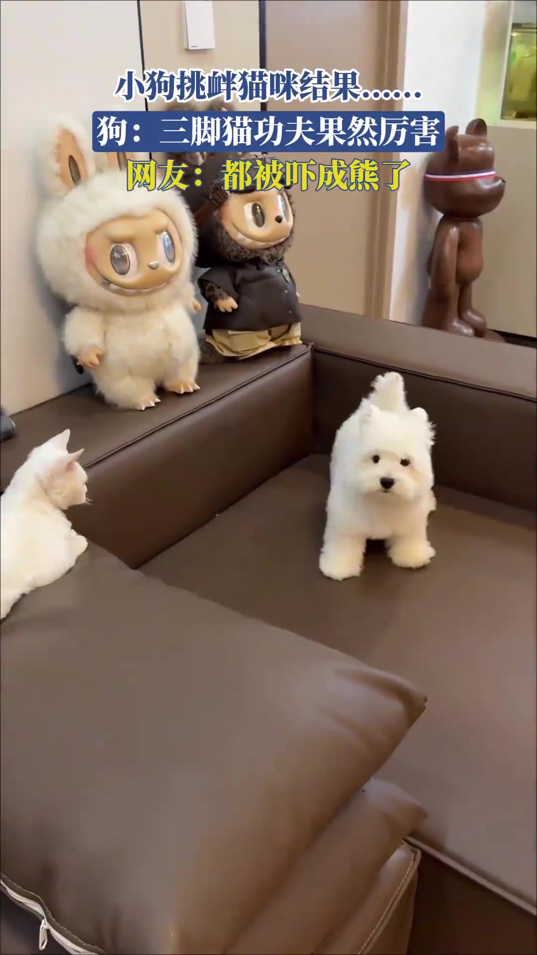 小狗挑衅猫咪被揍网友:三脚猫功夫厉害