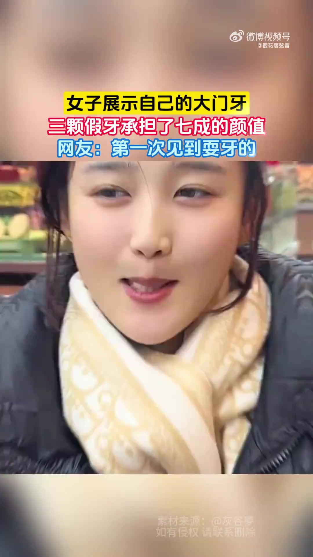 >女子展示自己的大门牙,三颗假牙承担了七成的颜值