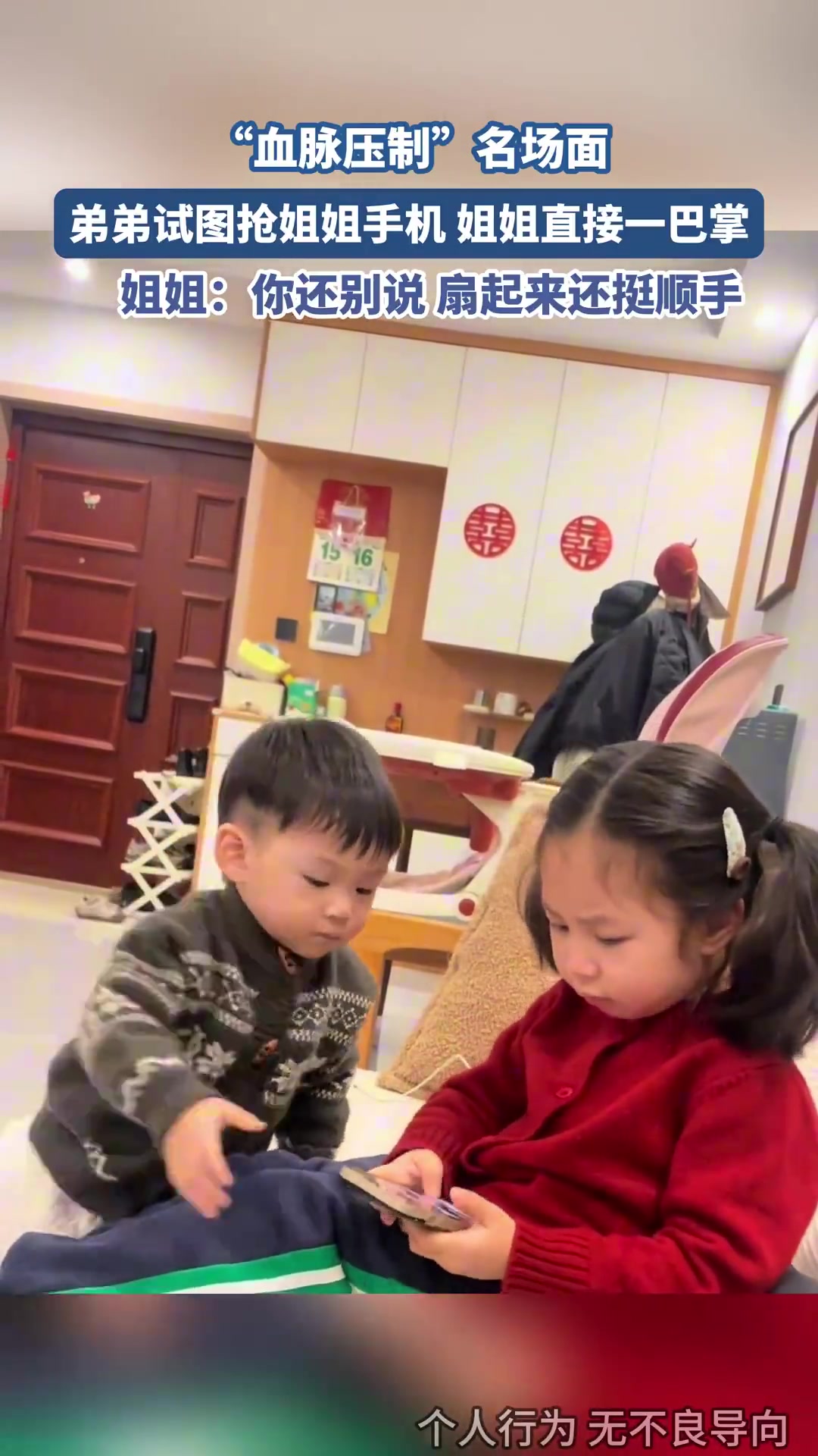血脉压制:弟弟抢手机,被姐姐一巴掌