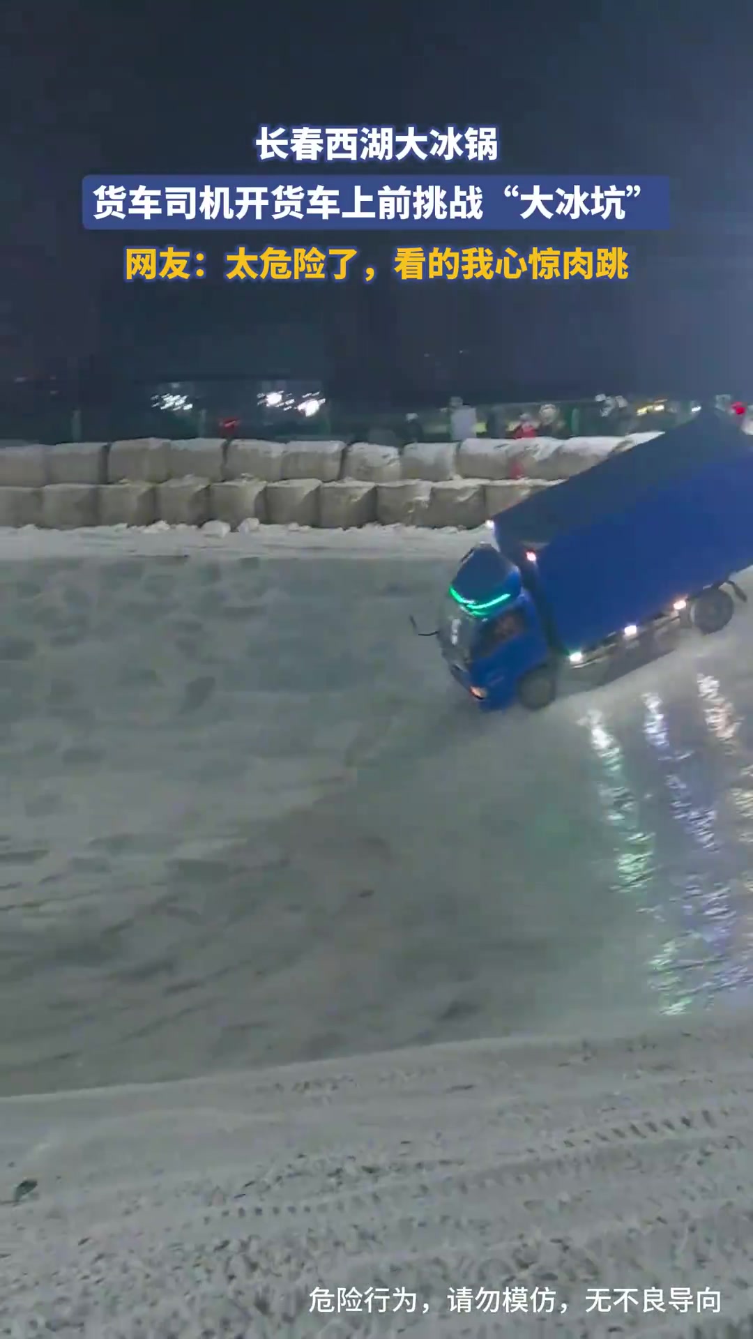 长春西湖大冰锅,货车司机开货车上前挑战“大冰坑”