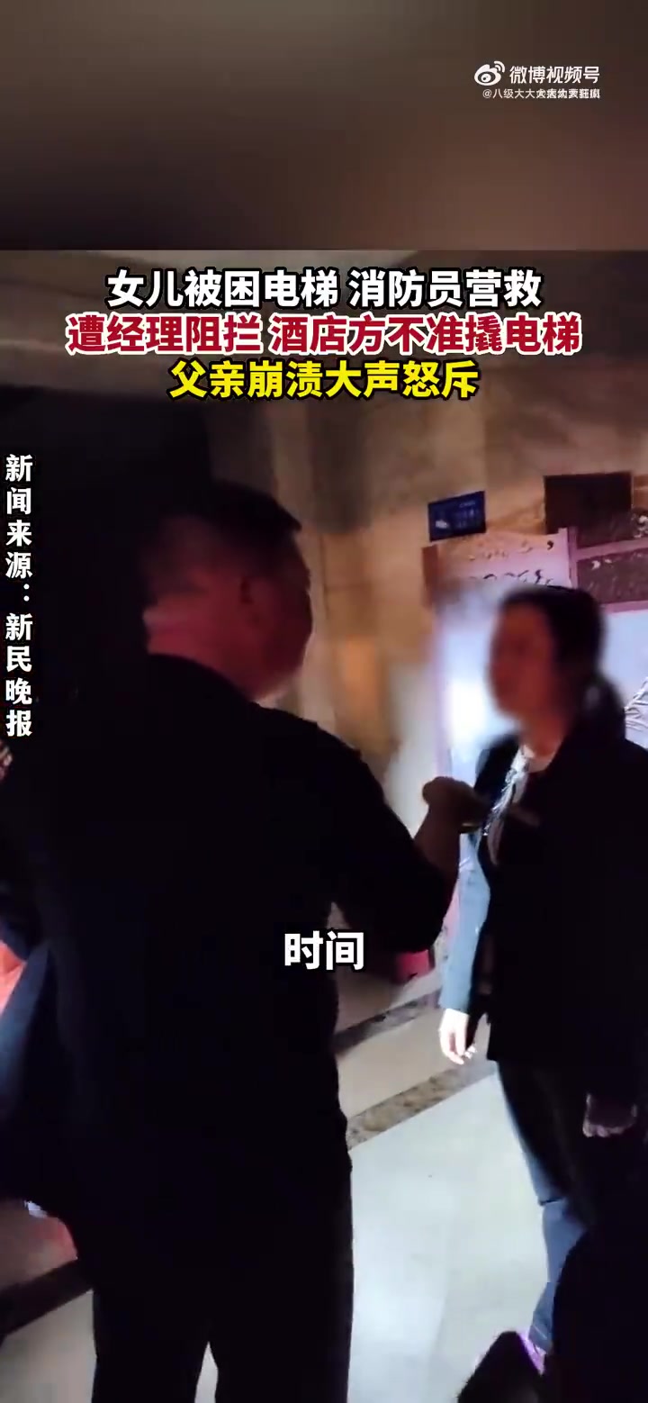 女儿被困电梯,消防员营救遭酒店经理阻拦!