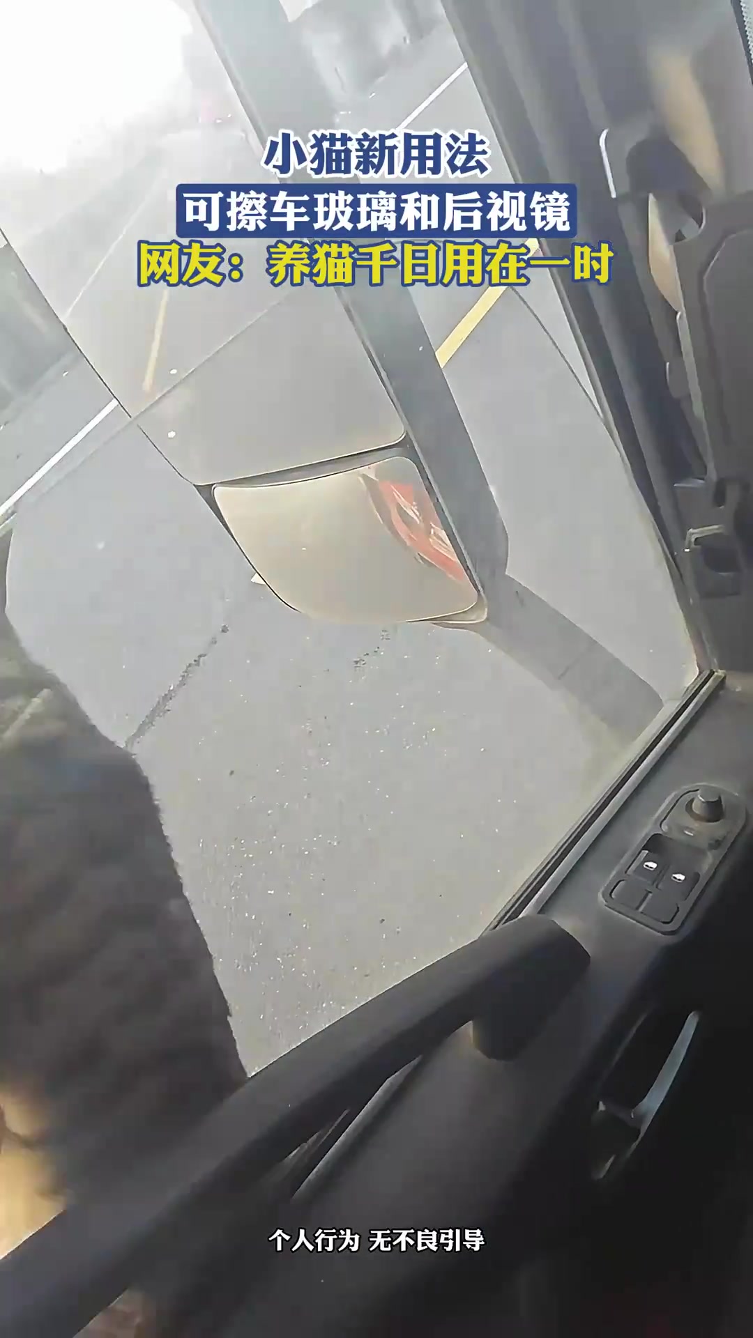 猫咪新用途:擦车玻璃和后视镜,养猫千日用在一时!