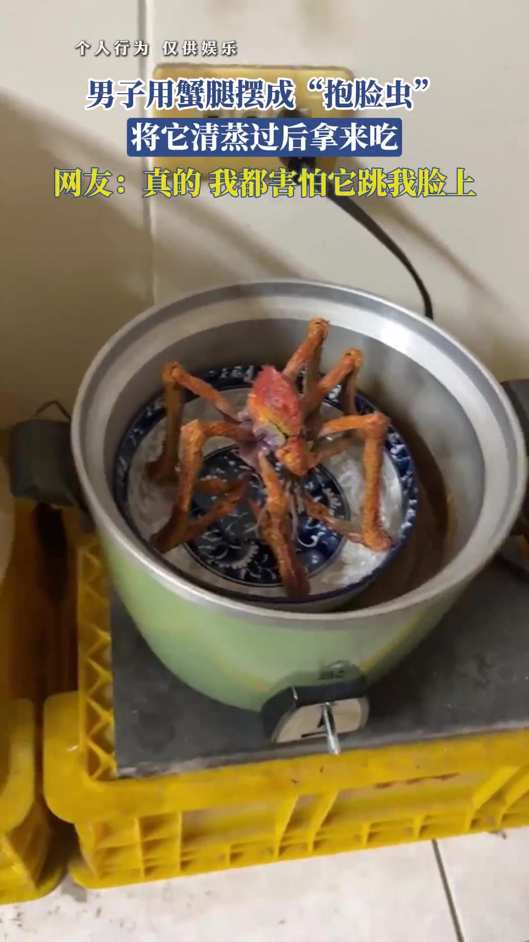 男子用蟹腿摆 “抱脸虫”,蒸熟后吃掉,太有创意了!