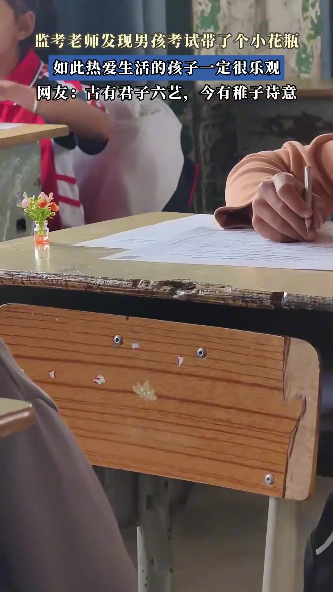 监考老师发现男孩考试带了个花瓶