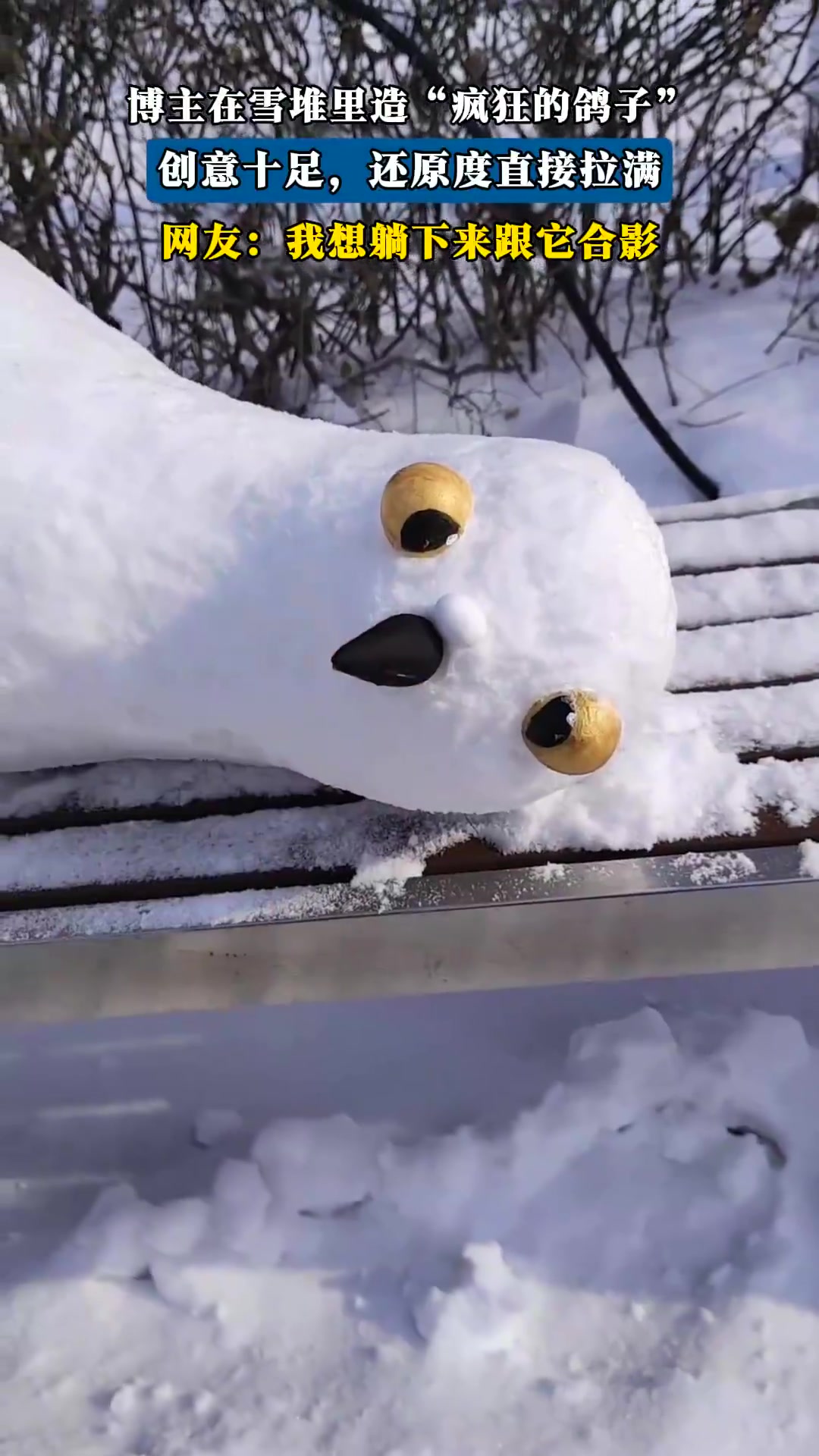 博主在雪堆里造“疯狂的鸽子”,创意十足,还原度直接拉满